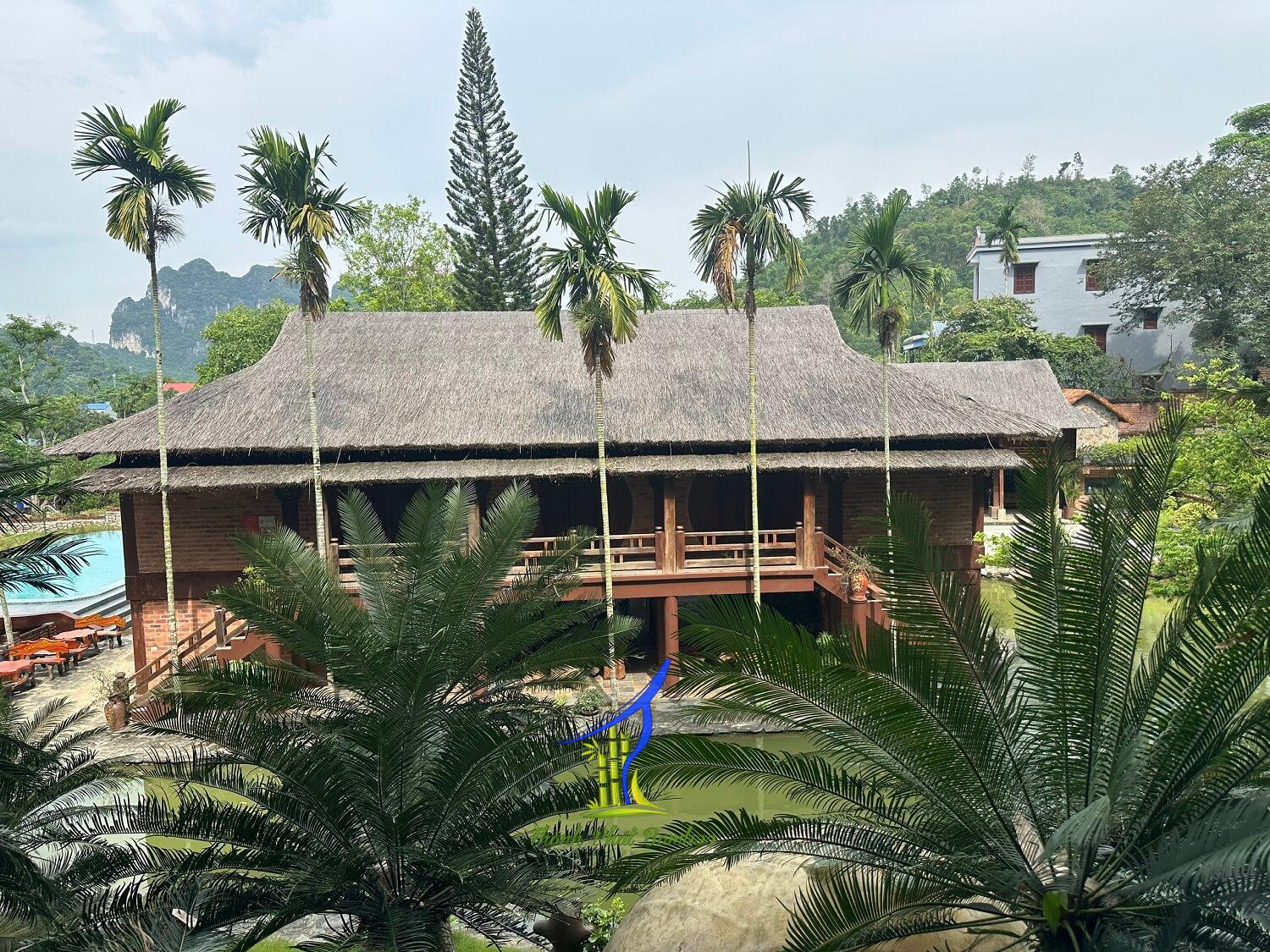 Lá guột nổi bật với chức năng bảo vệ mái nhà khỏi nắng nóng, nó còn mang lại vẻ đẹp tự nhiên và đường nét độc đáo. Mái lợp bằng lá guột mang đến một phong cách sang trọng và tinh tế, làm nổi bật sự tinh tế của công trình.